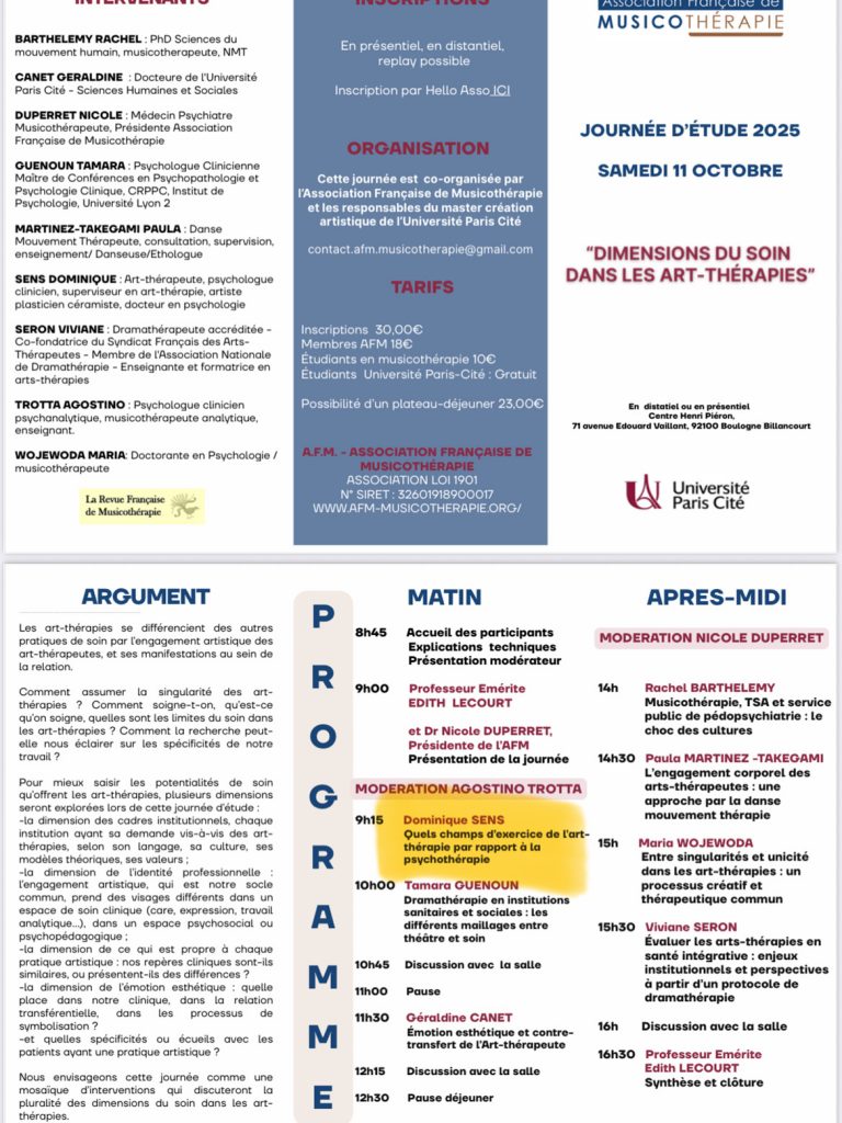 Journée d’étude samedi 11 octobre 2025 de l’Association française de Musicothérapie
